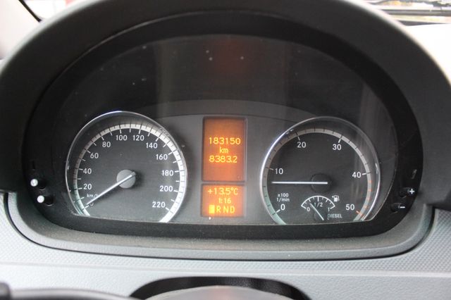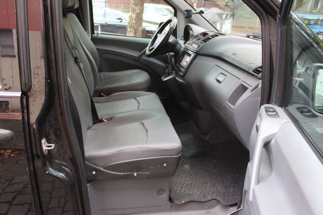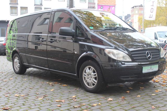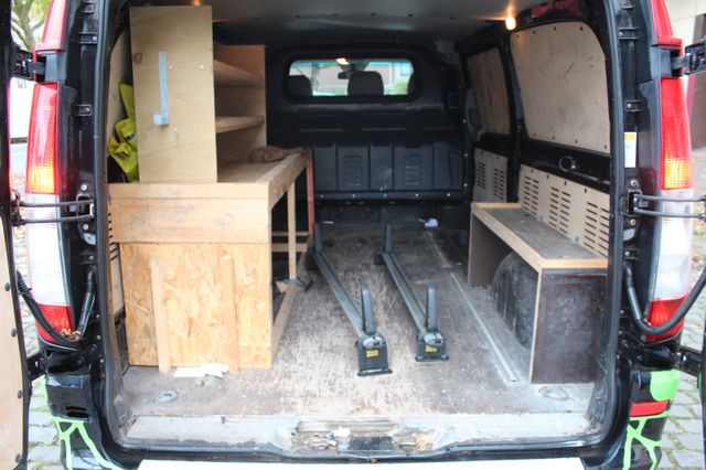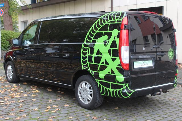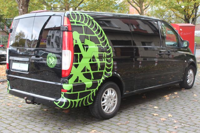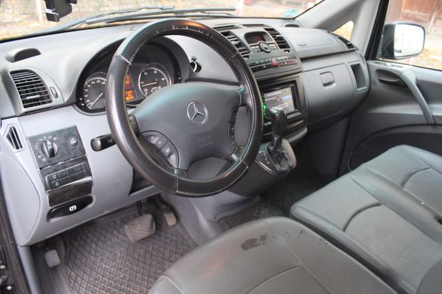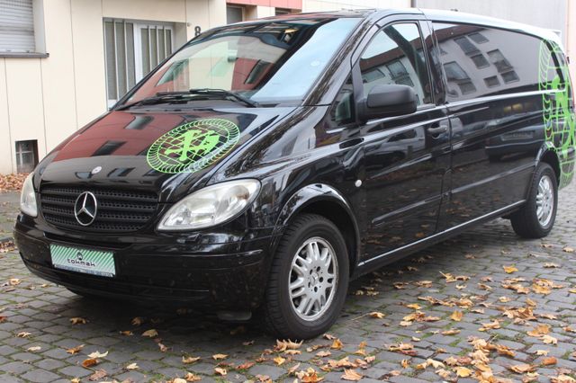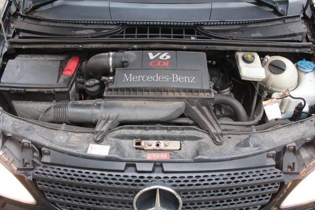 Sonderausstattung: Anhängelast 2500 kg, Ausstattungs-Paket: Top Load, Außenspiegel elektr. anklappbar, Außenspiegel elektr. verstell- und heizbar, beide, CD-Wechsler, Dachbedieneinheit mit Lesespot Fahrer-/Beifahrerseite, Einstiegsleuchten, Feuerlöscher, Hecktür mit Verglasung (Öffnungswinkel 270 Grad), Holzfussboden im Laderaum, Innenleuchte Laderaum zusätzlich, Klappdeckel für Ablagefach, Komfort-Klimaautomatik Thermotronik, Metallic-Lackierung, Parkhilfe (Ultraschall), Raucher-Paket, Reifendruck-Kontrollsystem, Rückspiegel innen, Schienensystem Lastenverankerung, Sitzbezug / Polsterung: Kunstleder, Sitze im Fahrerhaus: Doppelsitzbank Komfort, Beifahrerseite, Sitze im Fahrerhaus: Fahrersitz Komfort, Verglasung hinten abgedunkelt / Schwarzglas, Verkleidung im Lade-/FG-Raum: Sperrholz, Vorbereitung Mobiltelefon/Handy vernetzt, Wärmeschutzverglasung (Frontscheibe mit Bandfilter oben), Zusatzheizung (Warmwasser) Weitere Ausstattung: Airbag Fahrerseite, Ausführung: Vito Kasten, Außenspiegel asphärisch, beide, Bremsassistent, Generator 180 A, Innenraumfilter: Pollenfilter, Karosserie/Aufbau: extra lang, Karosserie/Aufbau: Kasten Standard, Laderaumtrennwand durchgehend, Lenkrad (Lenksäule mech. verstellbar), LKW-Zulassung, Motor 3,0 Ltr. - 150 kW CDI, Nebelschlussleuchte, Radstand 3430 mm, Schadstoffarm nach Abgasnorm Euro 4 Gr. III, Wartungsintervall-Anzeige Assyst