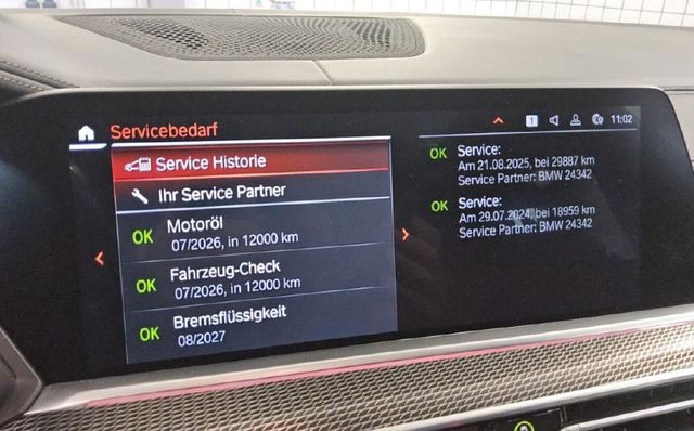 Sonderausstattung: Außenausstattung: Shadow-Line Hochglanz (erweiterter Umfang), DAB-Tuner (Radioempfang digital), Dachhimmel Alcantara / Anthrazit, Dachreling Hochglanz Shadow-Line, Fzg. ohne Modell-Schriftzug, Induktionsladeschale für Smartphone (Wireless Charging), Innenausstattung: Voll-Leder Individual Merino, Innovations-Paket, Instrumententafel lederbezogen, Klimaautomatik 4-Zonen mit autom. Umluft-Control, Komfortsitze vorn elektr. verstellbar (mit Memory), Kühlergrill beleuchtet (Iconic Glow), LM-Felgen vorn/hinten: 9,5x22 / 10,5x22 (Doppelspeiche 742 M, Bicolor, Jet Black), Metallic-Lackierung, Panoramadach (Glas), Parkassistent-Paket Plus, Scheinwerfer BMW Individual Shadow-Line, Sonnenschutzverglasung (hinten abgedunkelt), Sound-System Harman-Kardon Weitere Ausstattung: Adaptives Fahrwerk M-Technic, Aerodynamik-Paket M-Technic, Airbag Fahrer-/Beifahrerseite, Ambiente-Beleuchtung, Ausstattungs-Paket: Connected Teaser, Außenspiegel elektr. anklappbar, alle Spiegel mit Abblendautomatik, BMW Live Cockpit Professional, Bremsanlage: M Sportbremsen (Bremssättel lackiert), Diebstahlsicherung für Räder (Felgenschlösser), Dynamische Tractions Control (DTC), Einstiegsleisten mit Schriftzug M-Technic, Fahrassistenz-System: Active Guard Plus (Spurhalteassistent, Frontkollisionswarnung), Fahrassistenz-System: Fahrerlebnisschalter, Fahrassistenz-System: Fernlichtassistent, Fahrassistenz-System: Rückfahr-Assistent, Heckleuchten LED, Innenausstattung: Interieurleisten Aluminium Tetragon, Isofix-Aufnahmen für Kindersitz an Rücksitz, Karosserie: 5-türig, Kopf-Airbag-System hinten, Kopf-Airbag-System vorn, Lenkrad (Sport/Leder M-Technic) mit Multifunktion, Lenksäule (Lenkrad) elektr. verstellbar, Mittelarmlehne hinten, Motor 4,4 Ltr. - 390 kW V8 32V, Otto-Partikelfilter (OPF), Park-Distance-Control (PDC) vorn und hinten, Parkassistent-Paket, Parkbremse elektrisch, Personalisierungssystem (Personal Profile), Radstand 2975 mm, Reifendruck-Kontrollsystem, Rücksitzlehne geteilt/klappbar (40:20:40), Schadstoffarm nach Abgasnorm Euro 6d, Scheibenwaschdüsen heizbar, Seitenairbag vorn, Service-System: Apple CarPlay Information (Vorbereitung), Service-System: Concierge Services, Service-System: ConnectedDrive Services, Service-System: Intelligenter Notruf inkl. TeleServices, Service-System: Real Time Traffic Information (RTTI), Service-System: Remote 3D View, Service-System: Remote Services, Sitzausstattung: 5-Sitzer, Sitzheizung vorn, Sport-Auspuffanlage M, Sportdifferential, Start/Stop-Anlage (Funktion), Steckdose (12V-Anschluß) in Mittelkonsole und Koffer-/Laderaum (4-fach), USB-Schnittstelle