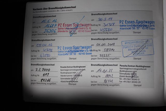Sonderausstattung: Außen-/Innenspiegel mit Abblendautomatik, Bi-Xenon-Scheinwerfer inkl. Porsche Dynamic Light System (PDLS), CD-Wechsler, Dachhimmel Alcantara, Exterieur-Paket, Fahrassistenz-System: Park-Assistent, Fahrassistenz-System: Spurwechselassistent, Fußmatten, Heckklappe mit automatischem Öffnungs- und Schließsystem, Innenausstattung: Leder, Interieur-Paket: Aluminium-Paket Sport, Komfort-Memory-Paket inkl. Sitzverstellung 14-Wege, Kopfstützen vorn mit Porschewappen, Kraftstofftank: 100 Ltr., Licht-Komfort-Paket, LM-Felgen 9x20 (RS Spyder Design Rad), Metallic-Lackierung, Porsche Communications Management (PCM) mit Off-Road - Navigation, Radlaufverbreiterung, Raucher-Paket, Reifendruck-Kontrollsystem, Schiebedach elektrisch, Seitenairbag hinten, Sitzbelüftung vorn, Skisack, Sonnenblenden Leder, Sonnenschutzrollo an Seitenscheiben hinten, elektrisch, Sound-System BOSE, Telefonmodul für Porsche Communications Management (PCM), TV-Tuner, analog und digital, Universal-Schnittstelle Audio, Verglasung hinten abgedunkelt (Privacyverglasung), Vorrüstung Vehicle-Tracking-System Weitere Ausstattung: Airbag Beifahrerseite abschaltbar, Airbag Fahrer-/Beifahrerseite, Anhängerkupplung Vorbereitung, Automatisches Bremsen Differential (ABD), Außenspiegel asphärisch, links, Außenspiegel asphärisch, rechts, Außenspiegel elektr. anklappbar, Außenspiegel elektr. verstell- und heizbar, Bordcomputer, Bremssättel Silber eloxiert, Einschaltautomatik für Fahrlicht, Einstiegsblenden (Edelstahl), Elektromotor 34 kW (Hybridantrieb), Fensterheber elektrisch vorn + hinten, Gepäckraumabdeckung / Rollo, Heckleuchten LED, Heckscheibenwischer, Hybrid 279 kW (Motor 3,0 Ltr. - 245 kW), Innenraumfilter: Aktivkohlefilter (Geruchsfilter), Interieur-Paket: schwarz (Hochglanz), Isofix-Aufnahmen für Kindersitz an Beifahrersitz, Isofix-Aufnahmen für Kindersitz an Rücksitz, Karosserie: 4-türig, Klimaautomatik, Kopf-Airbag-System (Curtain-Airbag), Parkbremse elektrisch, Pedalerie Edelstahl, Radstand 2895 mm, Reifen-Reparaturkit, Rücksitzlehne geteilt, Schadstoffarm nach Abgasnorm Euro 5, Seitenairbag vorn, Servolenkung Plus (geschwindigkeitsabhängig), Sonnenblenden mit Spiegel (beleuchtet), Start/Stop-Anlage, Regensensor