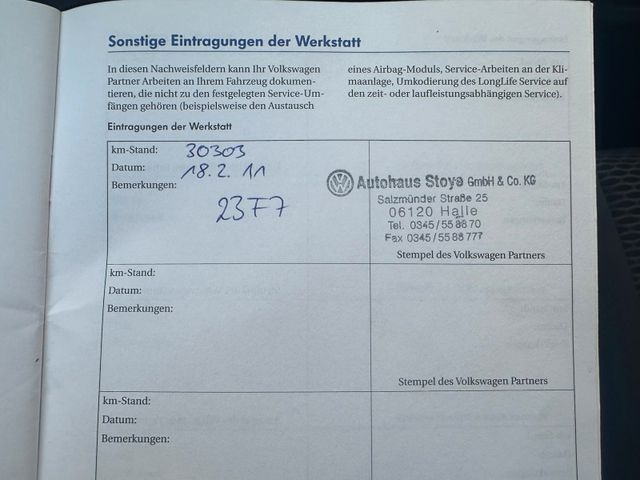 Sonderausstattung: Audiosystem RCD 310 (Radio/CD-Player), Metallic-Lackierung, Navigationsmodul RNS 310 (für Audiosystem RCD 310), Sitz vorn rechts höhenverstellbar, Vorrüstung Mobiltelefon/Handy mit Bluetooth-Schnittstelle, Winterbereifung zusätzlich (Kundenangabe erforderlich) Weitere Ausstattung: 3-Punkt-Sicherheitsgurt hinten mitte, Ablagefach am Dachhimmel, Airbag Beifahrerseite abschaltbar, Airbag Fahrer-/Beifahrerseite, Außenspiegel asphärisch, links, Außenspiegel elektr. verstell- und heizbar, Außenspiegel lackiert, Blinkleuchte in Außenspiegel integriert, Bremsassistent, Doppeltonhorn, Elektron. Differentialsperre (EDS), Frontscheibe Verbundglas getönt, Gepäckraumabdeckung / Rollo, Gepäckraumbeleuchtung, Handschuhfach mit Kühlfunktion, Heckscheibenwischer, Innenausstattung: Titan-Dekor, Innenraumfilter: Staub- und Pollenfilter, Innenspiegel abblendbar, Isofix-Aufnahmen für Kindersitz an Rücksitz, Karosserie: 4-türig, Knieairbag Fahrerseite, Kopfstützen hinten (3-fach), Lenkrad (3 Speichen), Lenksäule (Lenkrad) mechan. verstellbar, Höhen-/Längsverstellung, Leseleuchte, Motor 1,6 Ltr. - 77 kW TDI DPF, Multifunktionsanzeige / Bordcomputer, Nebelschlussleuchte, Nichtraucher-Paket, Reifen-Reparaturkit (Tire Mobility Set), Rücksitz geteilt / klappbar, Schadstoffarm nach Abgasnorm Euro 5, Scheibenwischer mit Intervallschaltung, regulierbar, Seitenairbag vorn mit Kopf-Airbag-Einheit, Sicherheitsgurte vorn mit Gurtstraffer, höhenverstellbar, Sitz vorn links höhenverstellbar, Sitzbezug / Polsterung: Stoff, Sonnenblende links mit Spiegel, Sonnenblende rechts mit Spiegel, Stahlfelgen 6x15, Türgriffe außen Wagenfarbe, Verbandkasten und Warndreieck, Warnanlage für Sicherheitsgurte vorn, Wärmeschutzverglasung grün getönt (seitlich / hinten)